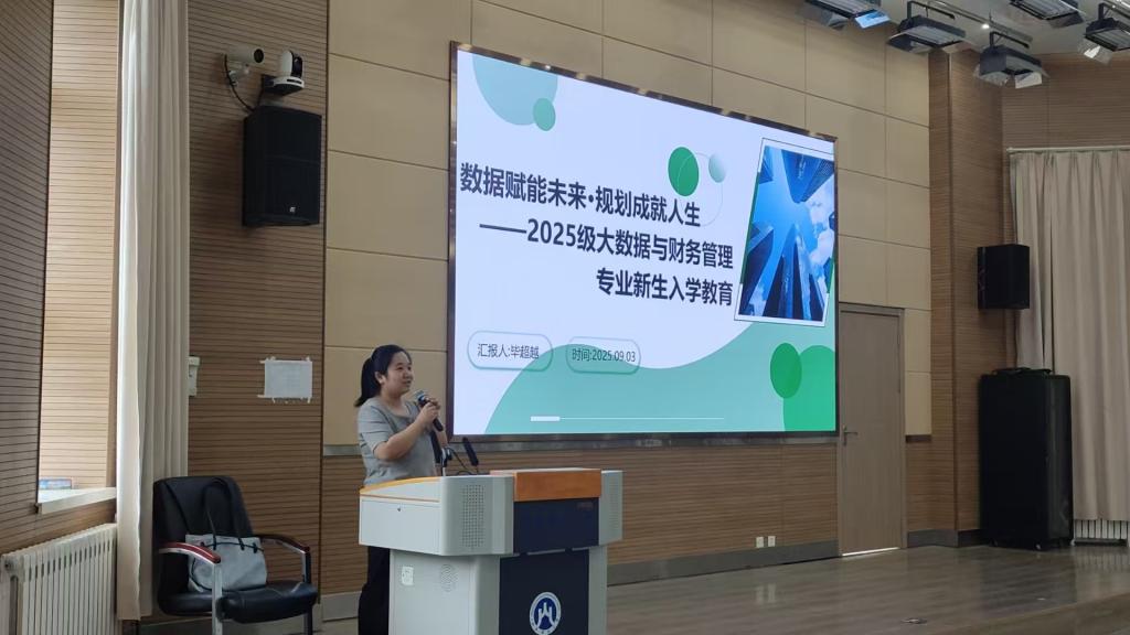 毕超越老师面向2025级大数据与财务管理专业新生开展了题为“数据赋能未来·规划成就人生”的新生入学教育讲座。程念西老师、2024级学生代表董夏立志及专升本优秀学生代表王菲共同参与。