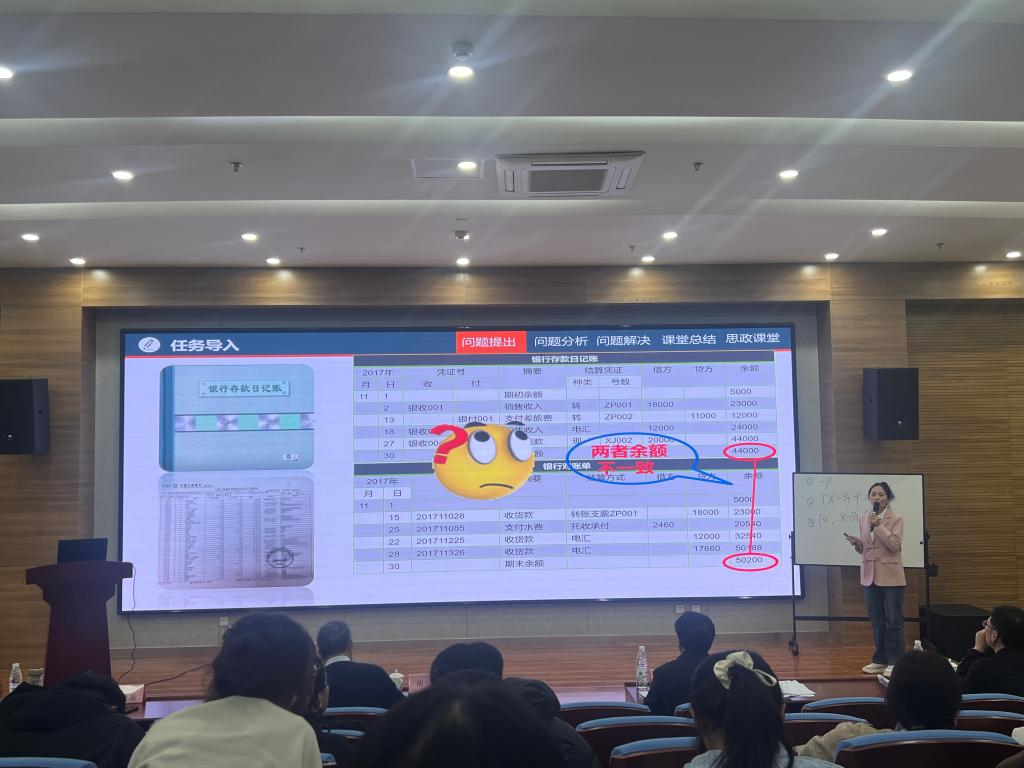 比赛中,孟兆芬老师以《银行存款清查》为题,将会计专业知识与实际案例深度融合,通过情境创设、互动问答等教学方式,将抽象的理论知识转化为生动的课堂实践,展现了深厚的专业素养和娴熟的教学技巧,赢得评委一致好评,斩获一等奖。